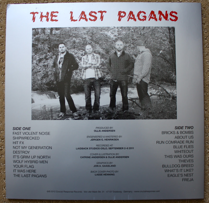 This is one I've been waiting to write for a while. It's because I first got Shipwrecked's "The Last Pagans" from Grave Mistake Records on black vinyl months ago, but I had to wait a while to finally pull the trigger on the expensive shipping from Germany to get it on the limited clear and white vinyl from Crucial Response Records. This has been hands down the album I have been listening to the most in 2012, and it is hands down my favorite release to come out this year. Scandinavia's Shipwrecked is a glorious mix of Oi! and 80s style Boston hardcore. Anyone that knows me at all knows that bands like The Templars and 86 Mentality are some of my favorite bands ever, so its no surprise that Shipwrecked sounds like the Templars and 86 Mentality had a love child, and maybe Slapshot was that boyfriend on the side and they're not sure who the baby's daddy is so it's all about to go down on Maury. Ok stay with me...